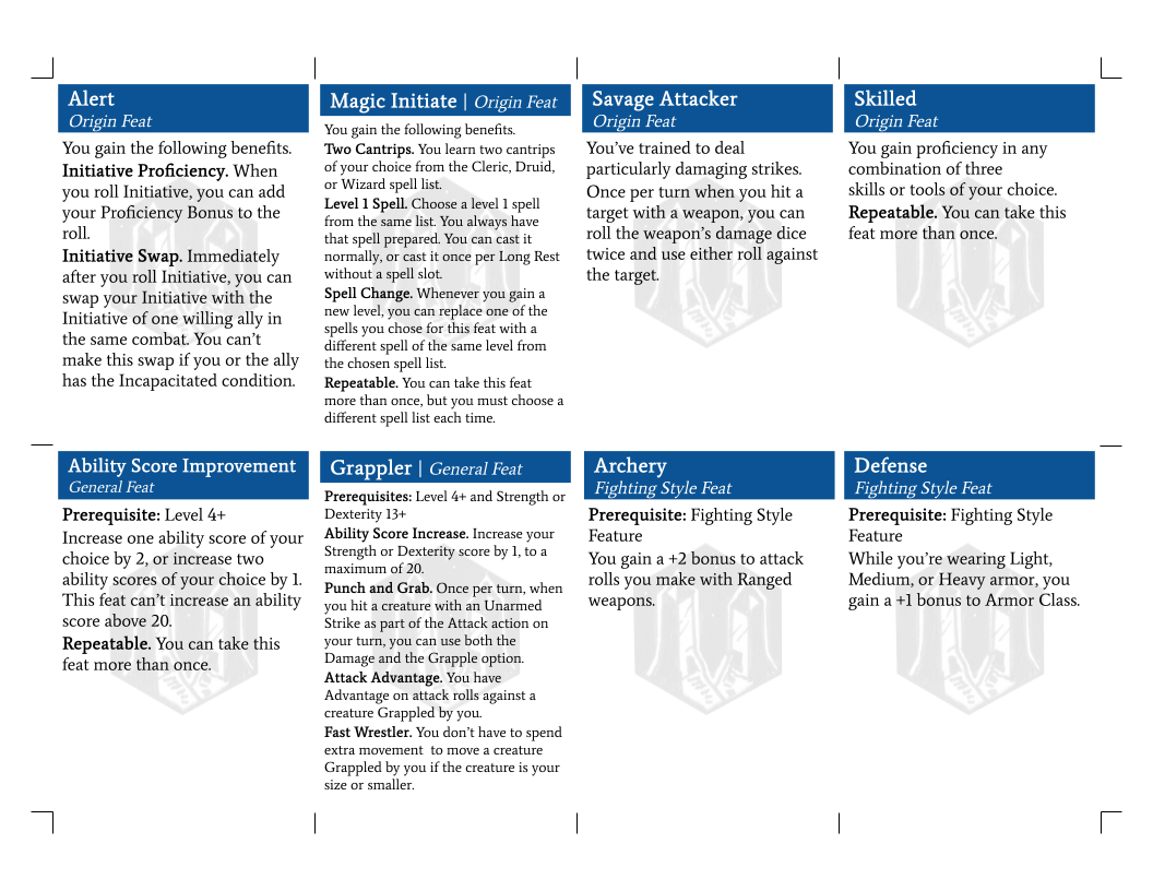 I suggest using these assets along with individual printouts of the character classes, equipment lists, spells, and any other resources relevant to your game. Link below: